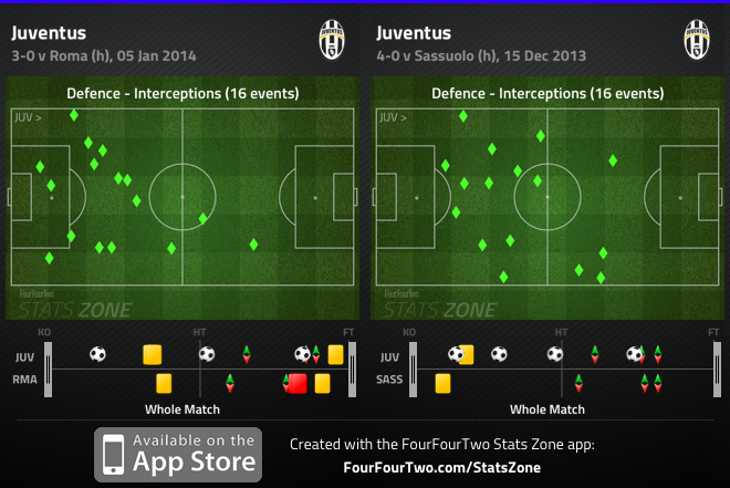 However, because Roma were so dangerous on the counter-attack, the key for Juve was stopping Gervinho. He's the only player in this side that offers genuine penetration – and Garcia might regret not playing Florenzi, whose forward running has been very useful, or Destro, who naturally gets into goalscoring positions.